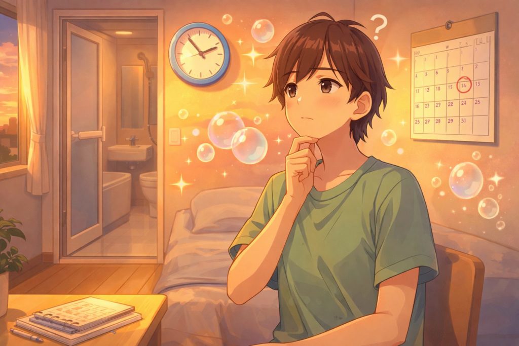 まずは、一人暮らしの3点ユニットバスという環境に合わせた、現実的な頻度の考え方を見ていきましょう。