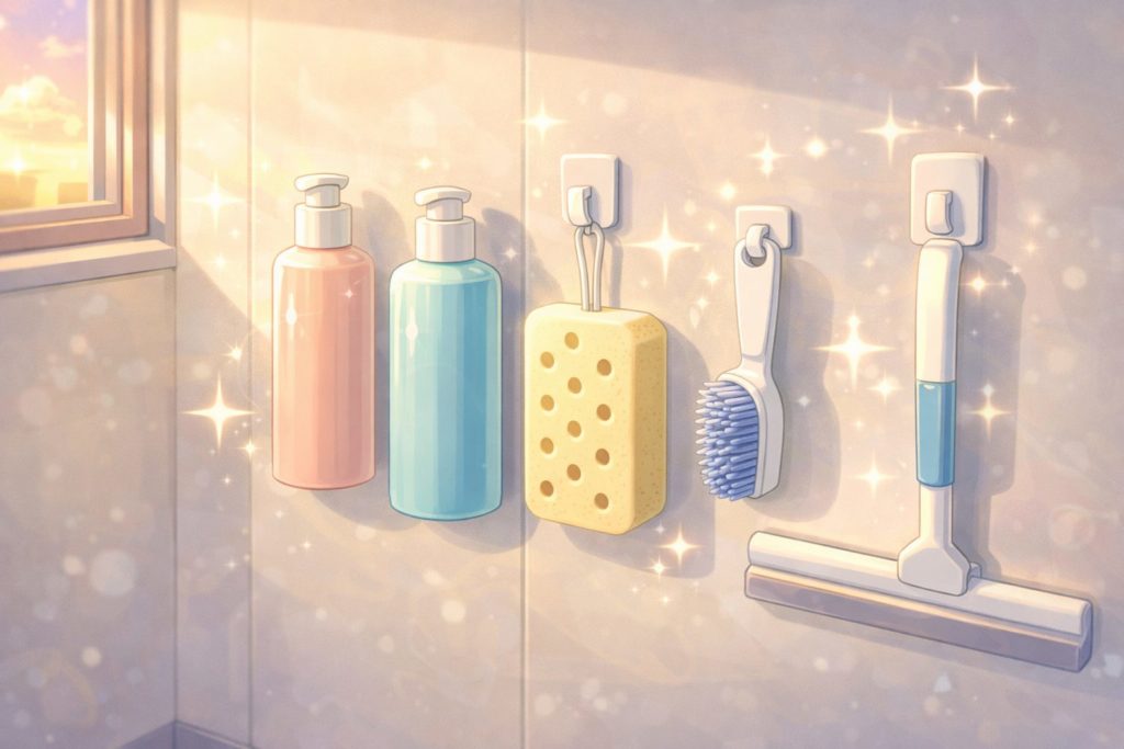収納スペースが限られる3点ユニットバスでは、道具を増やしすぎると邪魔になり、掃除のやる気を削いでしまいます。